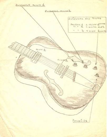 Ci dessous le micro S 60 et le micro SYG 4 sur des guitares Favino.