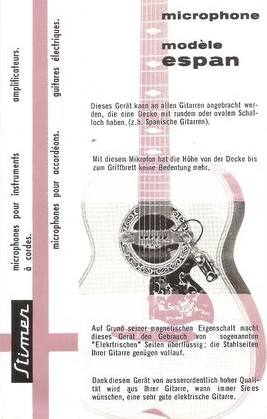 Publicité Stimer 1948  Publicite Stimer 1951  Presse Django Publicité Stimer 1953  Amplis et Micros 1953 Micro Stimer S 51  Publicité Stimer 1956  Micro Stimer Django Publicité Stimer 1958 Publicité Stimer 1960 Micros luthier Amplis Stimer S 17 V et S 11 Amplis Stimer 1960 Micro Espan Stimer Publicité Stimer 1971 Publicité Stimer 1975 Publicité Stimer 1979 Guitares et basses Fin et renaissance